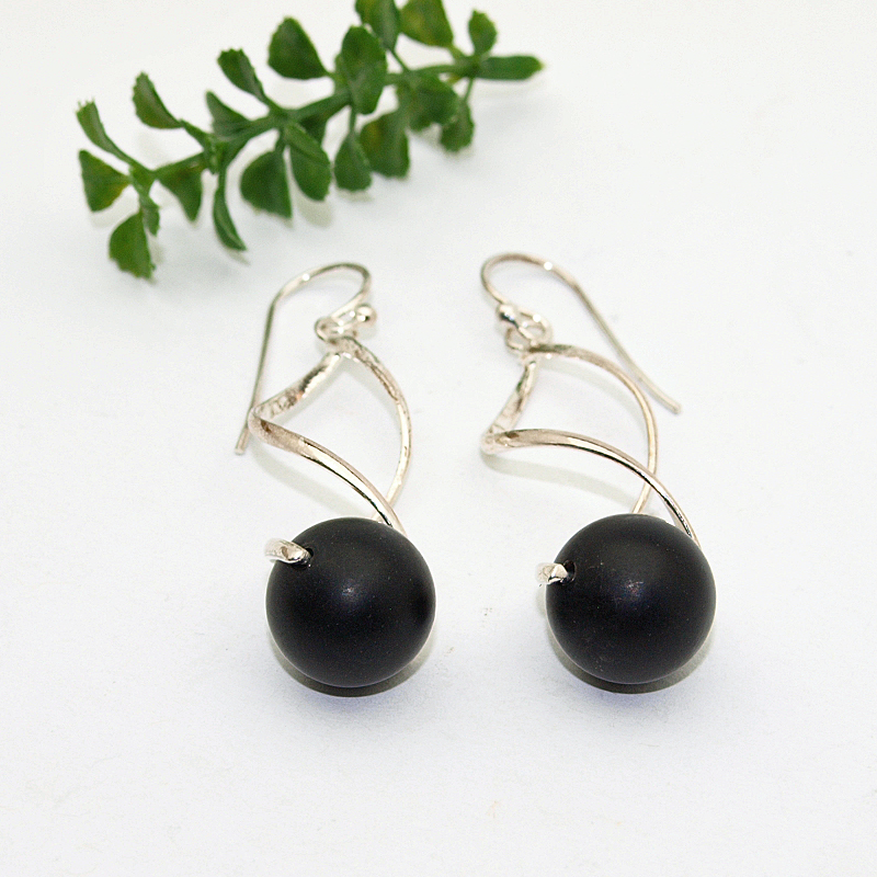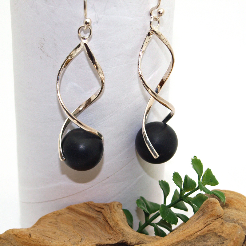 Glänzende schwarze Onyx Kugeln, ca. 12 mm stark und als Hänger getragen. Gehalten werden sie von wechselbaren Ohrhaken aus 925er Sterlingsilber. Die gesamte Länge der Onyx Ohrringe beträgt ca. 55 mm. Kombinierbar zu fast allen Outfits, schmücken die "schwarzen Hänger" jeden schlanken Hals.